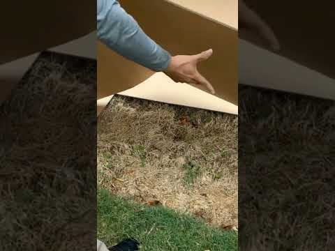 Lay cardboard sheet mulch to smother weeds and grass.