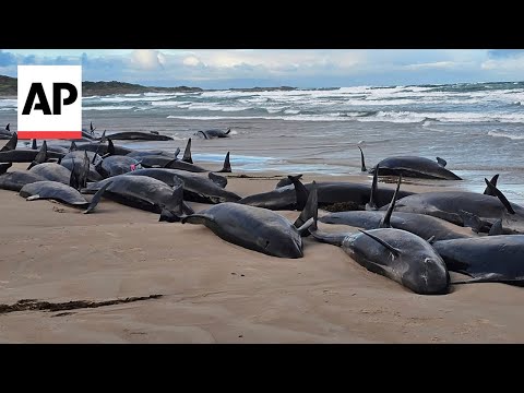 More than 150 false killer whales get stranded on a Tasmanian beach