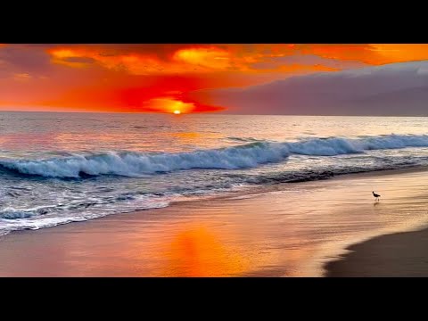 🔶 Ocean Sunset Glow 11Hrs Gentle Ocean Wave Sounds, Seagulls Seabird for Relaxation Meditation Sleep