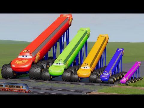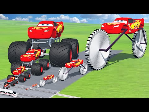 Big & Small, Long & Tall Lightning Mcqueen with Monster Truck Wheels vs Trains | BeamNG.Drive