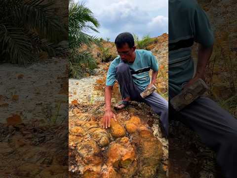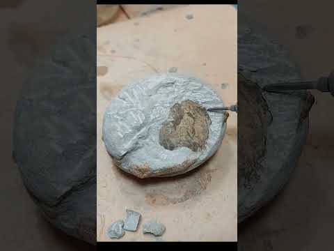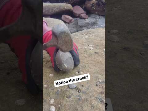 Breaking a round rock to find an ammonite fossil inside #breaking #geodes #ammonite #fossil #rock