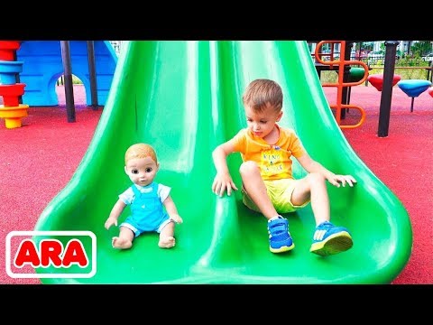فلاد ونيكيتا يلعبان بالدمى على ملعب خارجي