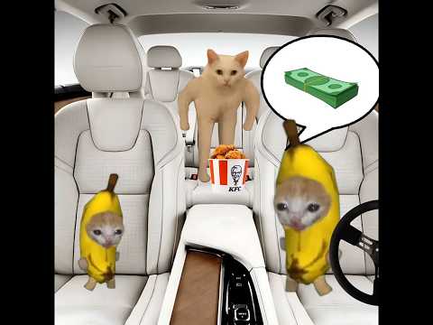 Baby Banana Cat car stops working & pulls with chain 😺❤️ #catmemes #cat #shorts #fyp #bananacat