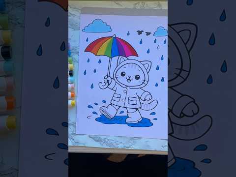 Coloring a Cute Cat in the Rain βπ Kids Coloring Fun!