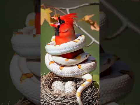 A male Cardinal fights a snake to defend its nest! #animals