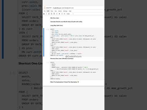 ⚡ SQL One-Liner: Calculate Month-over-Month Sales Growth with LAG()