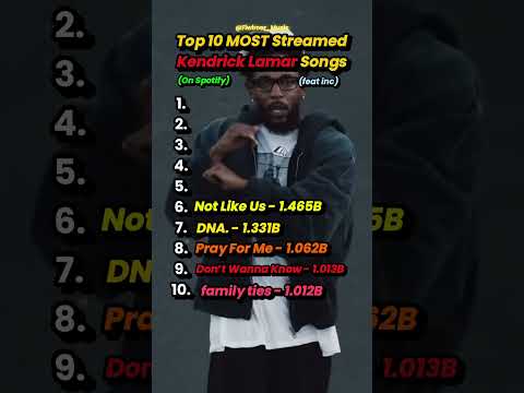 Top 10 MOST Streamed Kendrick Lamar Songs feat inc #rap #hiphop #music #kendricklamar #ranking