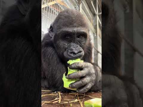 Cute GORILLA Eating ASMR PART 50 #shorts #fyp #gorilla #zookeeper #eating #asmr #monkey #viral