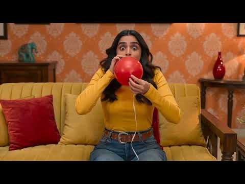 Female blow to pop balloon (AI video)
