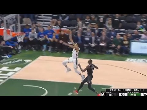 Giannis with the one dribble from half court freethrow line dunk! Giannis out there wilding!