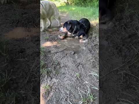 Grosser Schweizer Sennenhund/Grand Bouvier Suisse/Sky nimmt ein Schlammbad
