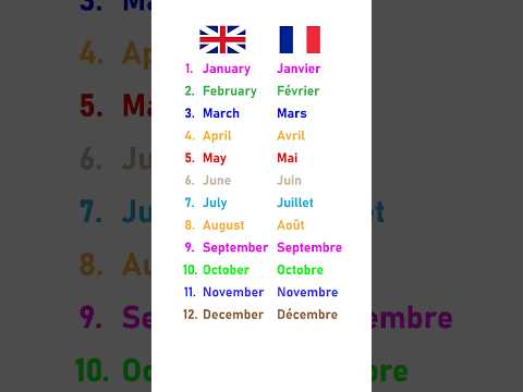 The months of the year in french. Les mois de l'année en Anglais.