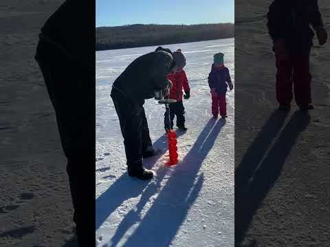 "Drilling" a hole through ice to fish. #outdoors #icefishing #canada