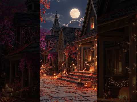 Cozy Autumn Village Halloween Ambience with Relaxing Crackling Fire & Nature Sounds, Crunchy Leaves