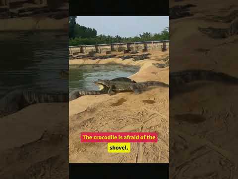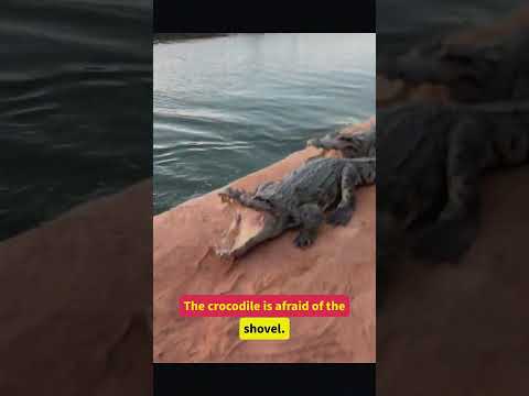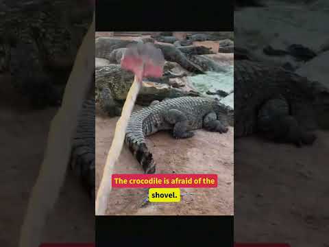 The crocodile is afraid of the shovel #crocodile #animals