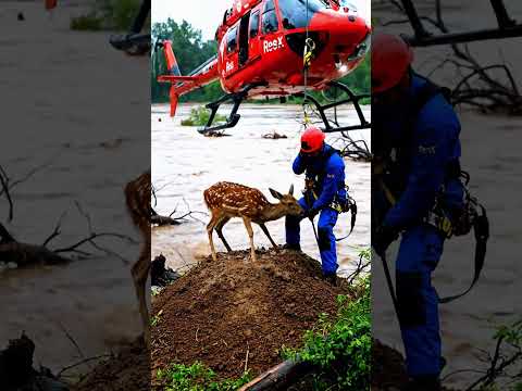 Rescue Man Saves Fawn Trapped in Flooded River #animals #fawn #deer