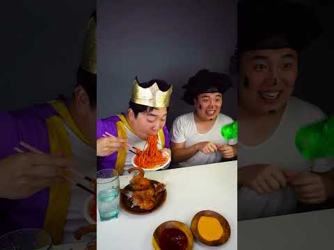 Spicy Noodle, Fried Chicken Bottle Flip Food Challenge! #shorts