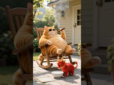 Fat Orange Cat and Shrimp Friend #cat #aicat #fatcat #orangecat #cat2025 #animals