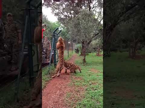 Tiger jumps to catch meat, filmed in slow-motion #animals #tigers #slowmotion #rescue #tiger #lion
