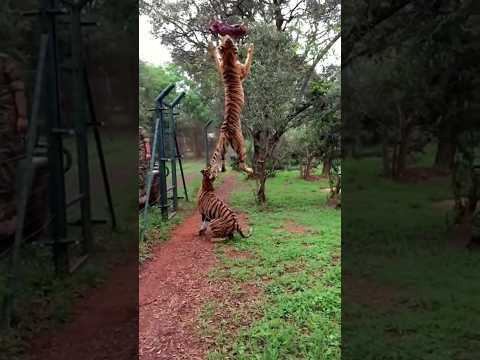 Tiger Jumps To Catch Meat 🥓 Filmed in Slow Motion #animals #tigers #slowmotion #tiger #funny #comedy