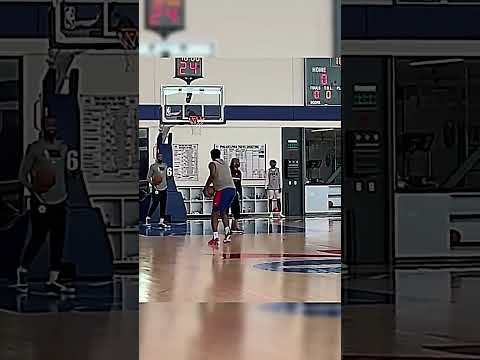 Joel Embiid tries the James harden double step back #basketball #nba #76ers #jamesharden #shorts