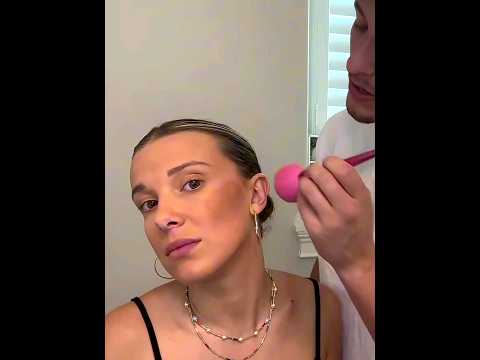 Jake’s reaction is priceless while doing Millie’s makeup.😂 #milliebobbybrown #jakebongiovi #short