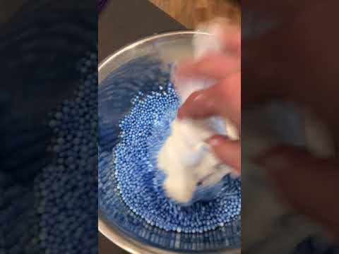 Mixing foam beads into slime!