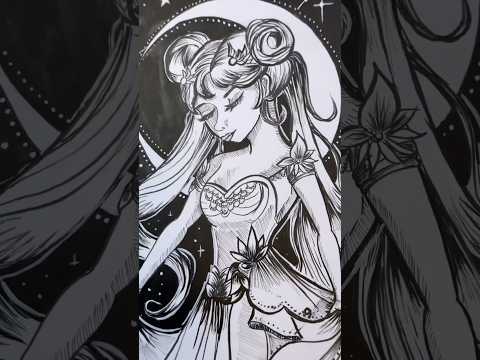 Inktober 2023: Day 23 Celestial. Drawing inspired by the anime Sailor Moon, just in my style #art