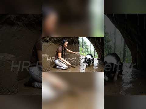 Building Shelter in a Rock Cave During Heavy Rain | Relaxing Rain Sounds & Survival #camping #asmr