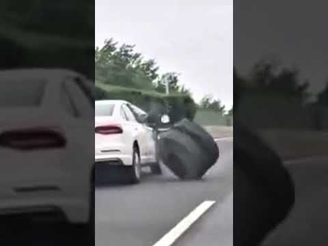 A truck tire came off while driving and hit a car — watch what happened next. #truckcrash #crash