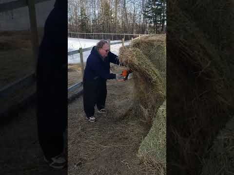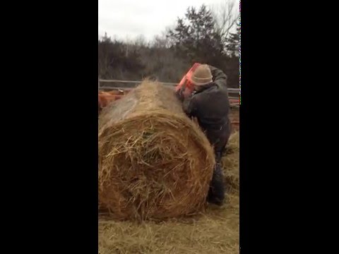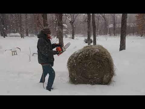 Cutting Round Bales with Chainsaw