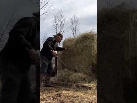 Big hay bale + chainsaw = small squares 💪🏻 #goats #farmfamily #goatmilk