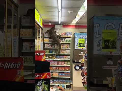 Huge Monitor Lizard broke into supermarket in Thailand