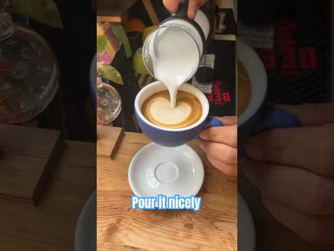 How to make cappuccino at home without espresso machine! Latte art with no jug. #coffee #coffeeart