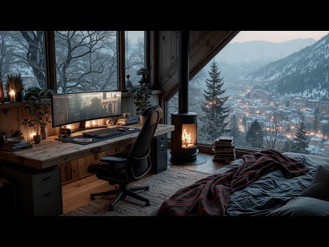 Cozy Winter Deep Work & Study Music - Boost Focus - Snowy Mountain View Ambiance