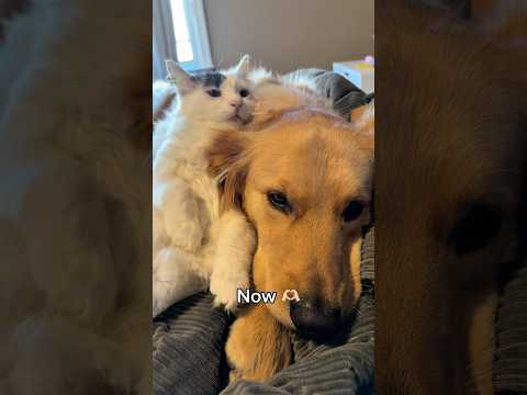 Unbreakable bond since the very start 🥹 #dog #cat #fosterfail #goldenretriever
