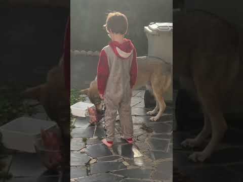 Mon fils nourrit mon chien-loup #animaux #chien #barf