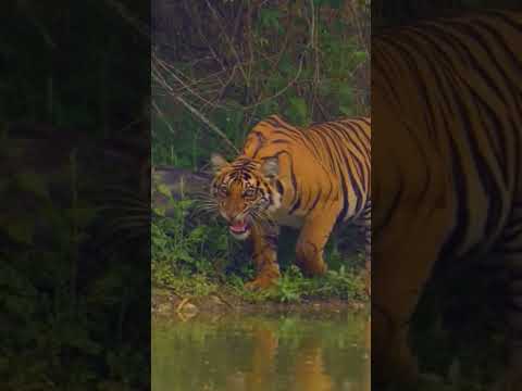 Tiger jumps to catch meat, filmed in slow-motion#shortsvideo#shrots