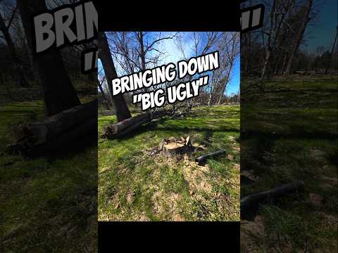 Cutting down a pair of twisted White Oaks. #shorts #satisfying #chainsawman #tree