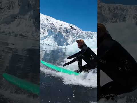 POV Surfing glacier Tsunami in Alaska #calving #glacier #waves #shorts #surfing #surf