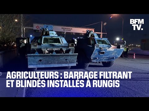 Colère des agriculteurs: un barrage filtrant et des blindés installés à Rungis