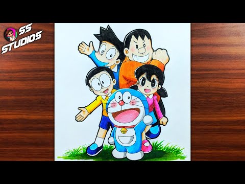 How to draw Doraemon and his friends | Doraemon and his friends drawing easy with color pencil