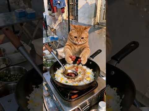 Chef Cat is back with the fried rice! 🐈🔥 #funny #viralclips