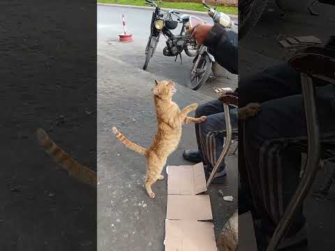 Feeding a hungry stray cat with a kind old man | ASMR Feeding