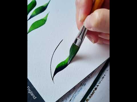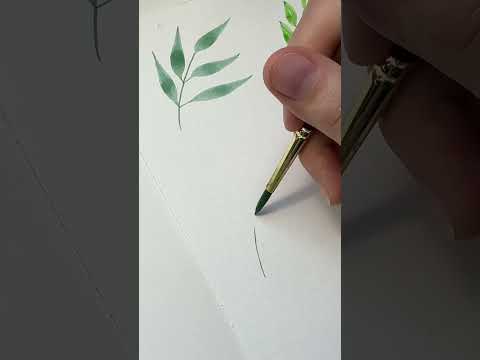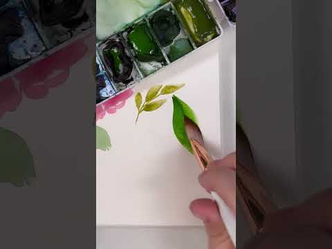 Watercolor Painting 4 different types of leaves by using one brush #art #watercolorpainting