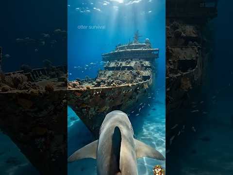 A Giant Shark with a GoPro Explores a Sunken Cruise Ship #GoProPOV #UnderwaterExploration #SunkenShi