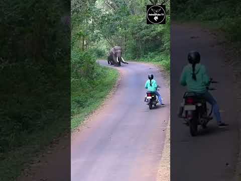 female on bike facing incoming elephant - Second Decision Saves Life #viralnews #shorts #viral