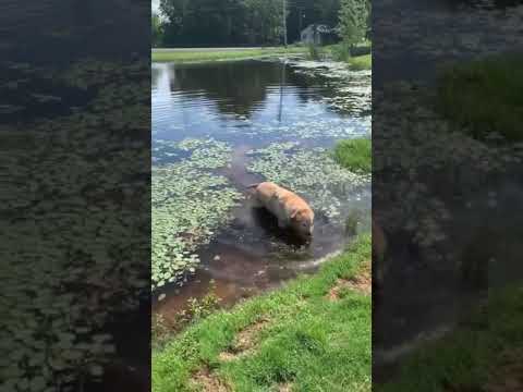 Dog drinks water from the lake by mistake