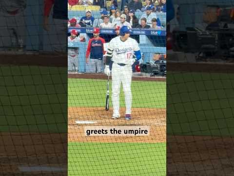 Shohei Ohtani’s uses his bat to align with the plate and greets the umpire before every at bat