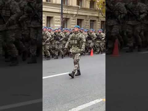 Turkish soldiers parading in the streets of Baku, Azerbaijan